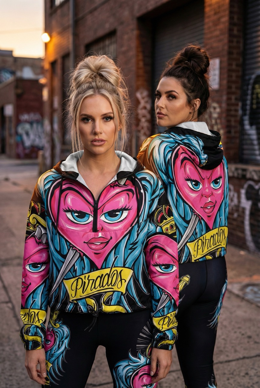 La Heart Queen cropped windbreaker combina un corte corto deportivo con el icónico diseño Pirados Heart Queen. El tejido ligero y resistente al agua y el forro de malla transpirable hacen que la chaqueta sea cómoda de llevar, mientras que la capucha y la cintura ajustables permiten adaptar el ajuste. Perfecta para la calle, para viajar o para el uso diario. Combina perfectamente con todas las piezas de la colección Heart Queen.